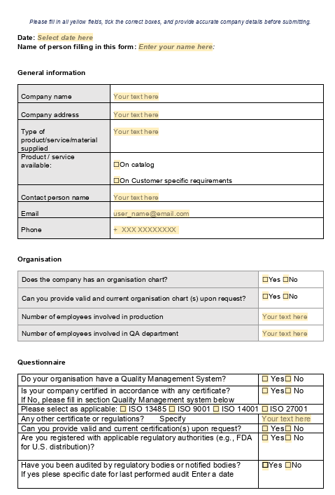 Supplier Questionnaire – Secure and Simple Supplier Information Collection